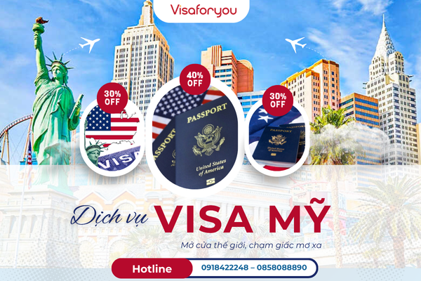 Visaforyou – Dịch vụ visa Mỹ trọn gói chuyên nghiệp, uy tín và minh bạch.Giúp bạn đến gần hơn với giấc mơ Mỹ bằng sự chuẩn bị đúng đắn và hành trình an tâm tuyệt đối. Liên hệ tư vấn dịch vụ qua Hotline: 0918422248 - 0858088890