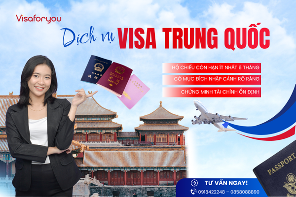 Visaforyou cung cấp dịch vụ visa Trung Quốc chuyên nghiệp, hướng dẫn hồ sơ, quy trình xin visa các loại (du lịch, công tác, thăm thân…) trọn gói nhanh chóng và chính xác. Liên hệ ngay 0918422248 - 0858088890 để được hỗ trợ.